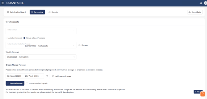 Use Weekly Forecast to choose the weeks you want to forecast.